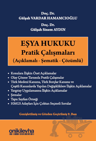 Eşya Hukuku Pratik Çalışmaları (Açıklamalı - Şematik - Çözümlü) isimli bu kitap, Medeni Hukuk'un en zor dalı olarak nitelendirilen Eşya Hukuku alanında gerek öğrencilere gerekse uygulayıcılara yardımcı olmak amacıyla kaleme alınmıştır. Kitapta, yazarların meslek hayatlarının başından bu yana kendi derslerinde, sınavlarında hazırlamış oldukları pratik çalışmalar çözümleriyle birlikte yer almakta, bu kapsamda kullanılan özet açıklamalı şemalar ve ayrıca Hukuk Mesleklerine Giriş Sınavı adayları için örnek çözümlü çoktan seçmeli sorular okura sunulmaktadır. Eşya Hukuku'nun kapsamı ve zorluğu göz önüne alınırsa kitap, içerdiği yerine göre özet yerine göre detaylı ve şematik bilgiler ile Eşya Hukuku öğrenen öğrenciler ve uygulayıcılar için önemli bir kaynak oluşturmaktadır.